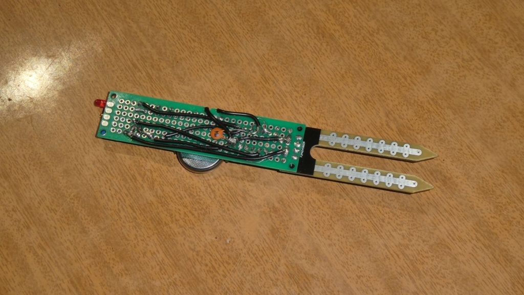 Все это подбирается экспериментально без омметра: дожидаемся, пока почва высохнет до нужного уровня, проверяем сигнал с прибора:
