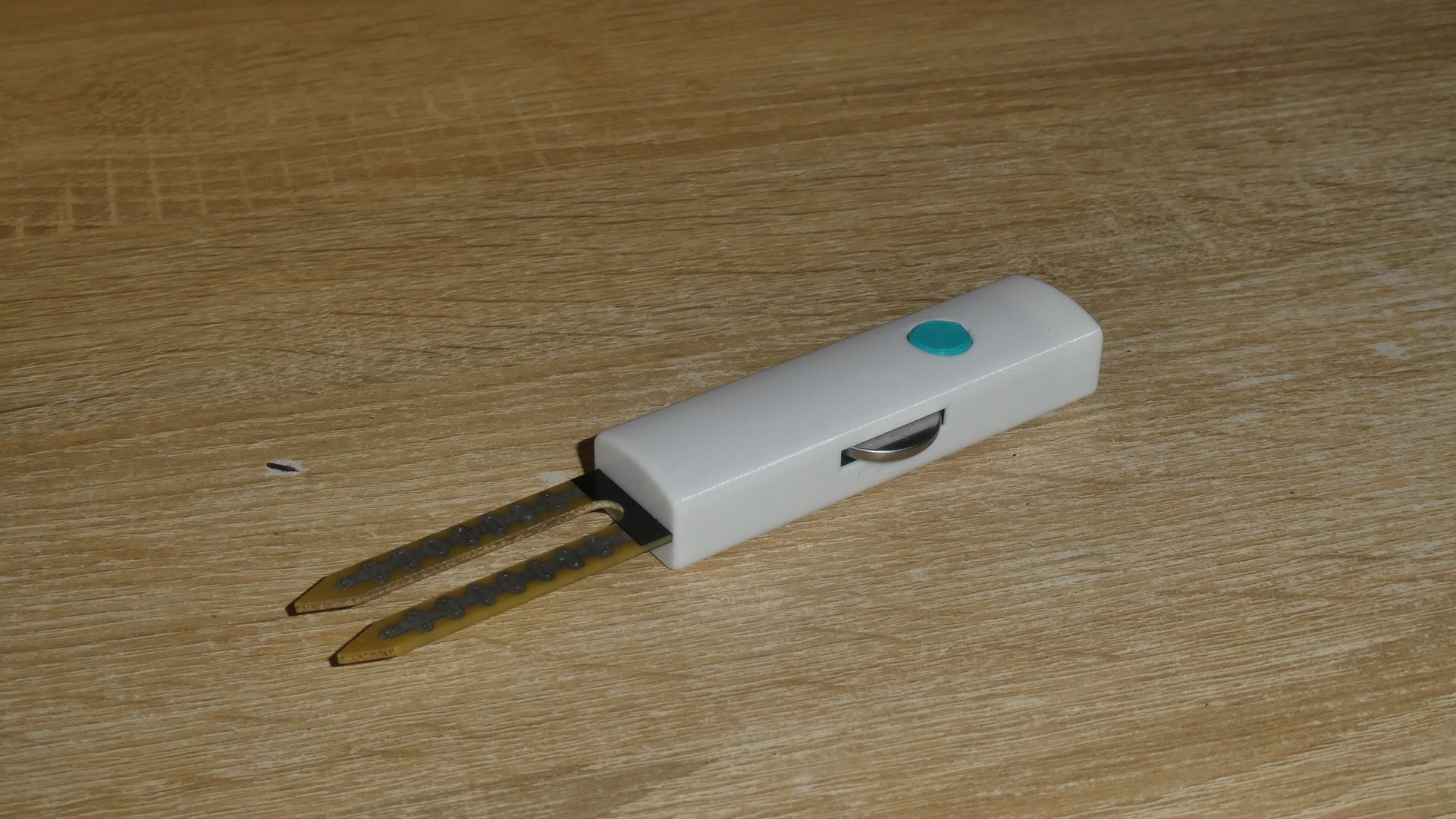 В теории все должно работать так длительное время без коррекций, так как мы программно измеряем VCC батарейки и учитываем падение напряжения при ее разрядке, но мир не идеален, и сопротивление щупа со временем будет расти, поэтому периодические проверки и подстройки вышеуказанным способом все же придется выполнять. Регулярность тестирования показаний зависит от качетсва щупа — самый дешманский с электродами из чермета сгниет быстрее такого же с золочеными контактами, ну а щупы из графита могут использоваться годами во влажной почве без потери свойств. Для предотвращения накопления эффекта поляризации и прочих химических эффектов в длительной перспективе, можно после замены батарейки переставлять устройство с одной стороны горшка на другую.