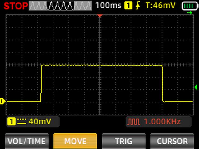 В итоге, стабилизация 1 секунда плюс замеры с усреднением 0.2 секунд при питании от батарейки cr2032 (3 вольт) и потенциометром, установленном на 300к выглядит на осциллограмме следующим образом: замерено 126 мВ, 333к (300к потенциометра и 33к почвы).