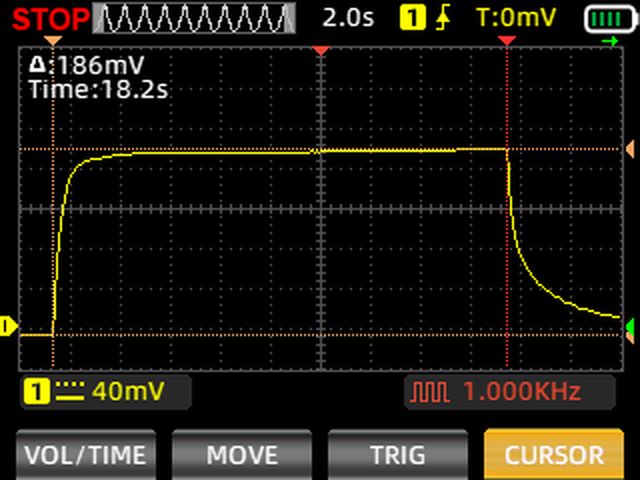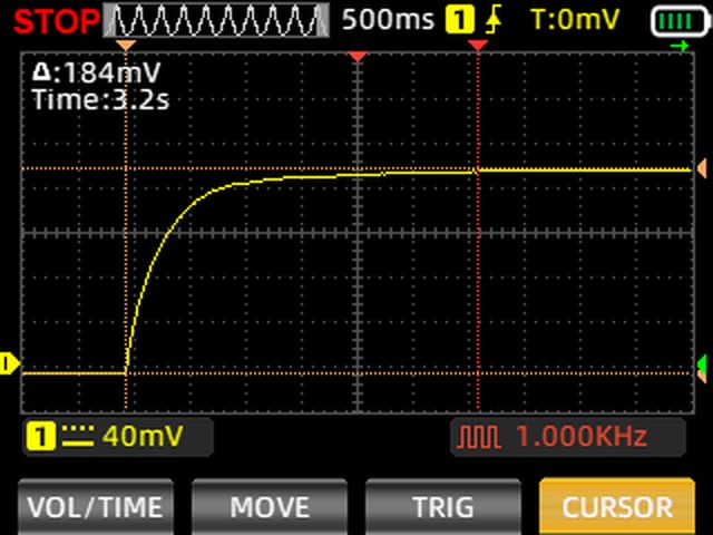 Здесь мы видим, что даже спустя 15 секунд напряжение еще не до конца стабилизировалось, и все еще немного продолжает расти. Но давайте примем за более или менее стабильное значение 184 мВ и расчитаем время, необходимое на замер сопротивления с некоторой погрешностью: